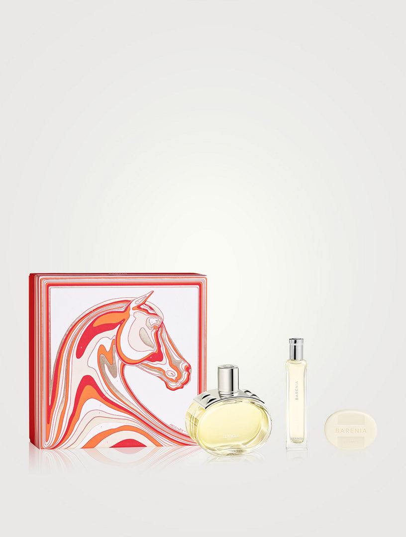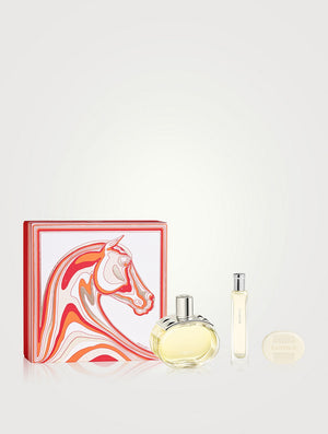 El Cofre Hermès Barénia es un set elegante y sobrio diseñado para quienes aprecian una fragancia sofisticada, con carácter y profundidad. Este estuche exclusivo combina la Eau de Parfum Barénia 100 ml, una miniatura de 15 ml y un jabón perfumado de 25 g, para ofrecer una experiencia aromática completa, ideal tanto para uso diario como para regalo.