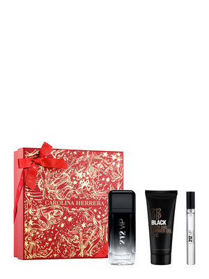 Este set de regalo triple contiene 212 VIP BLACK Eau de Parfum (100 ml), Mega Spritzer (10 ml) y Shower Gel (100 ml), un gel estimulante que te dejará la piel suave, fresca y delicadamente perfumada.